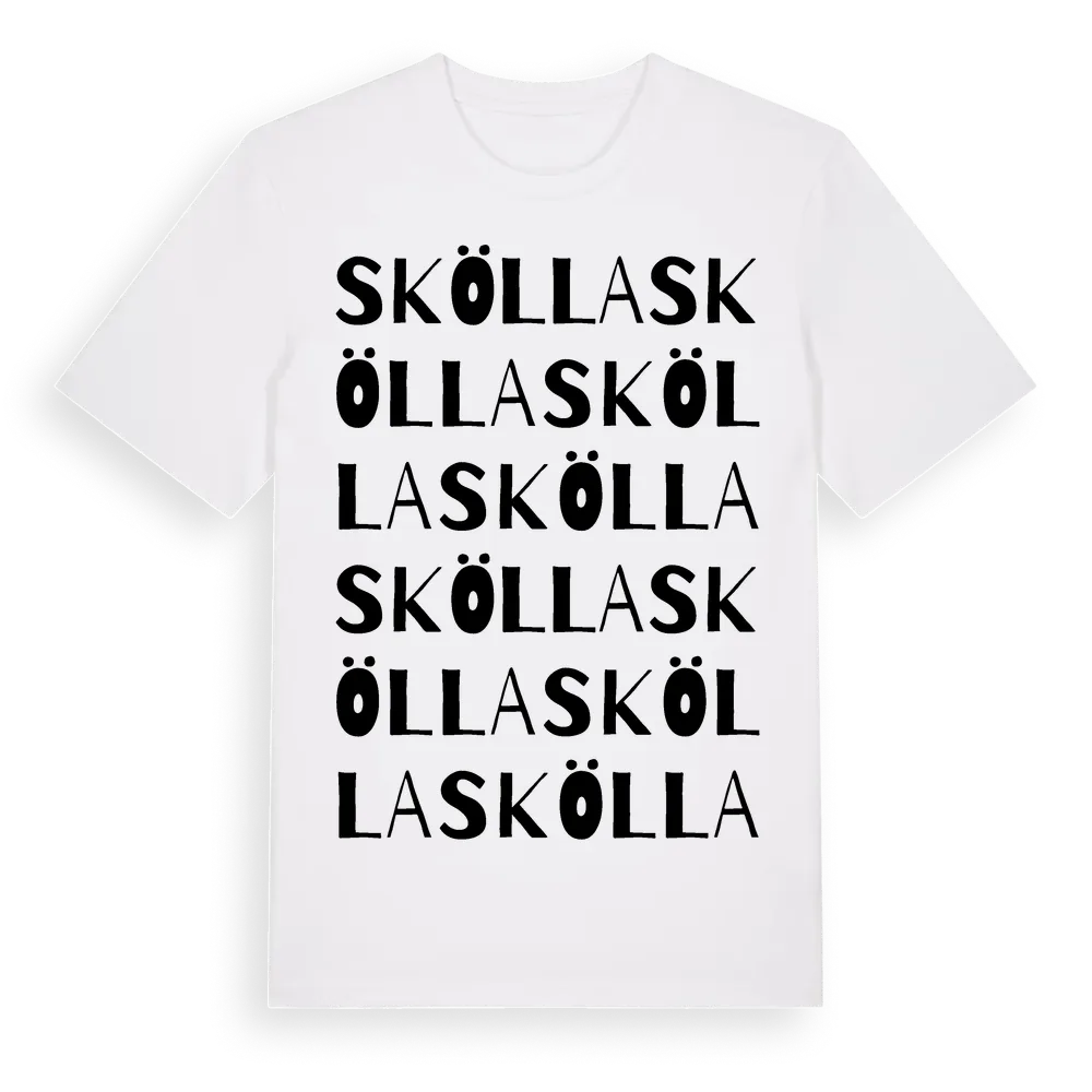 Skölla ordlek t-shirt är inspirerad av Skölla i Värmlands län, Sverige. Tröjan är designad för dig som har en speciell koppling till platsen – oavsett om du bor här, har rötterna här eller bara älskar Skölla.