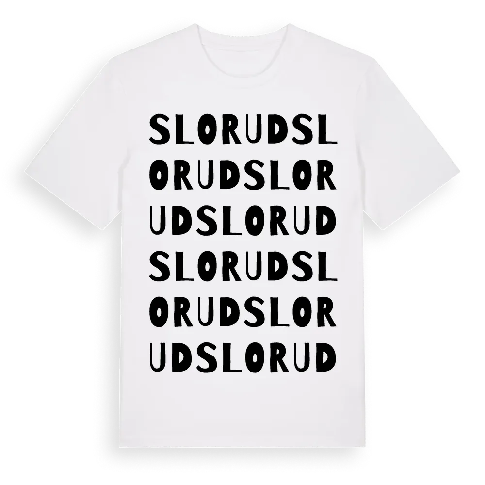 Slorud ordlek t-shirt är inspirerad av Slorud i Värmlands län, Sverige. Tröjan är designad för dig som har en speciell koppling till platsen – oavsett om du bor här, har rötterna här eller bara älskar Slorud.