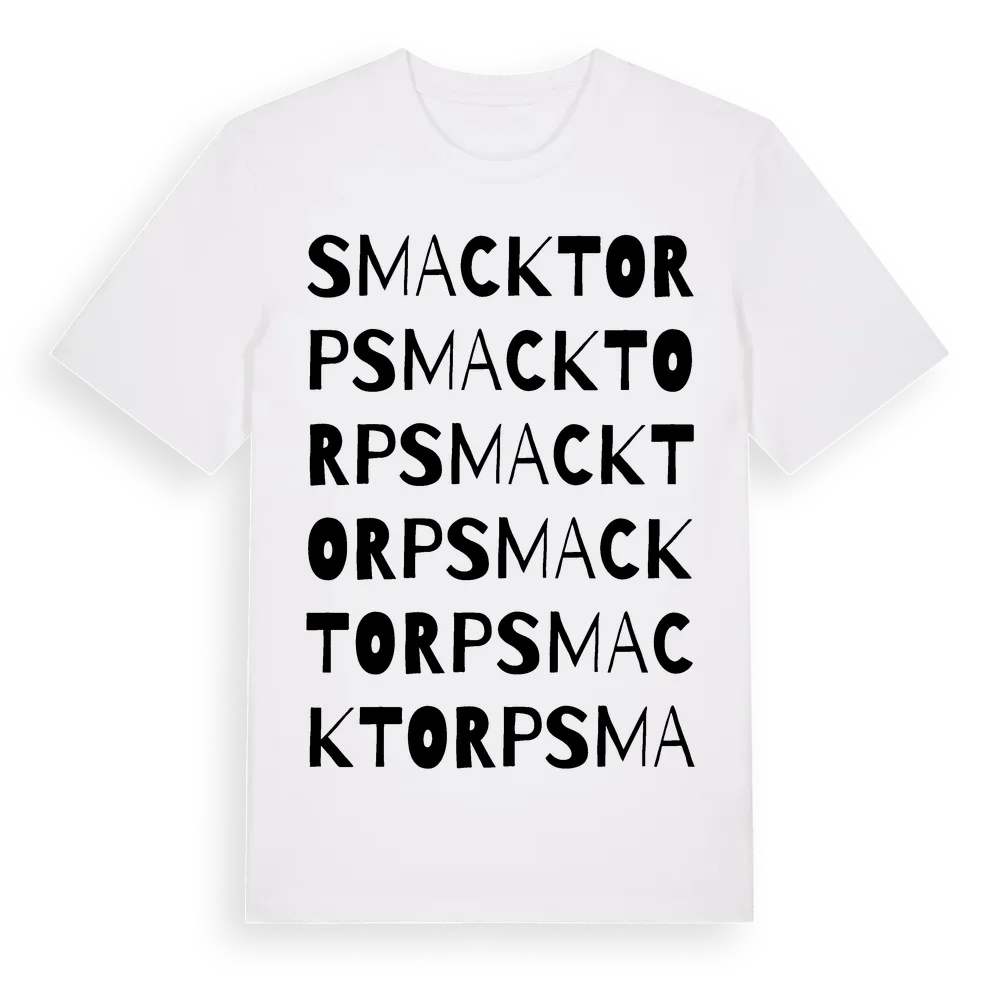 Smacktorp ordlek t-shirt är inspirerad av Smacktorp i Värmlands län, Sverige. Tröjan är designad för dig som har en speciell koppling till platsen – oavsett om du bor här, har rötterna här eller bara älskar Smacktorp.