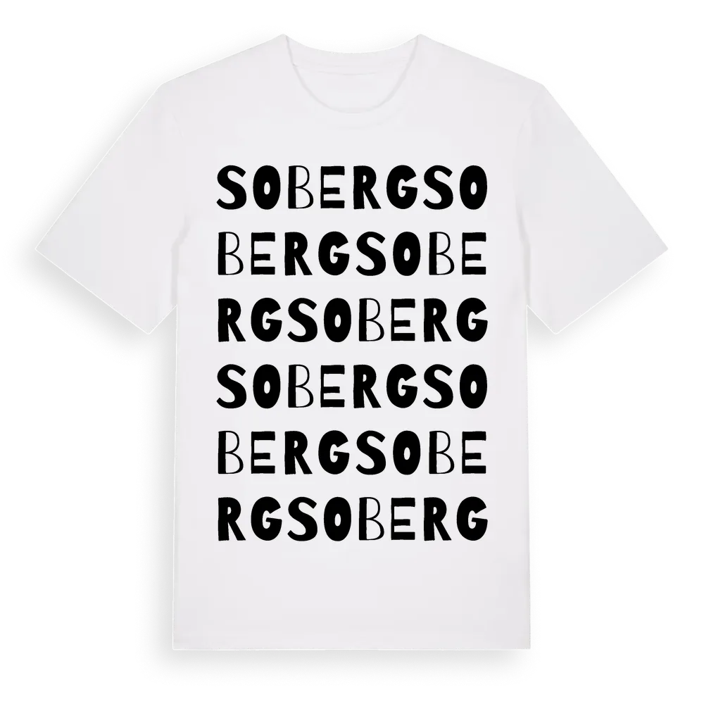 Soberg ordlek t-shirt är inspirerad av Soberg i Värmlands län, Sverige. Tröjan är designad för dig som har en speciell koppling till platsen – oavsett om du bor här, har rötterna här eller bara älskar Soberg.