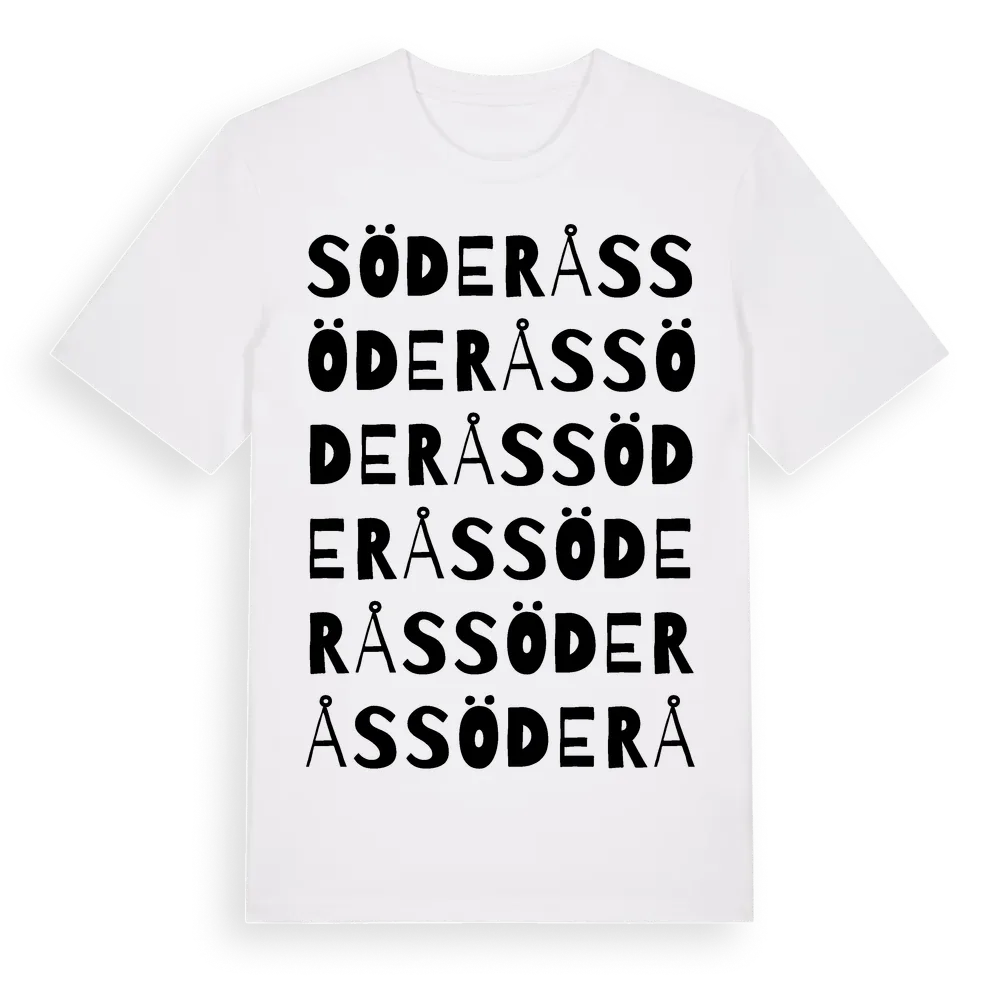 Söderås ordlek t-shirt är inspirerad av Söderås i Värmlands län, Sverige. Tröjan är designad för dig som har en speciell koppling till platsen – oavsett om du bor här, har rötterna här eller bara älskar Söderås.