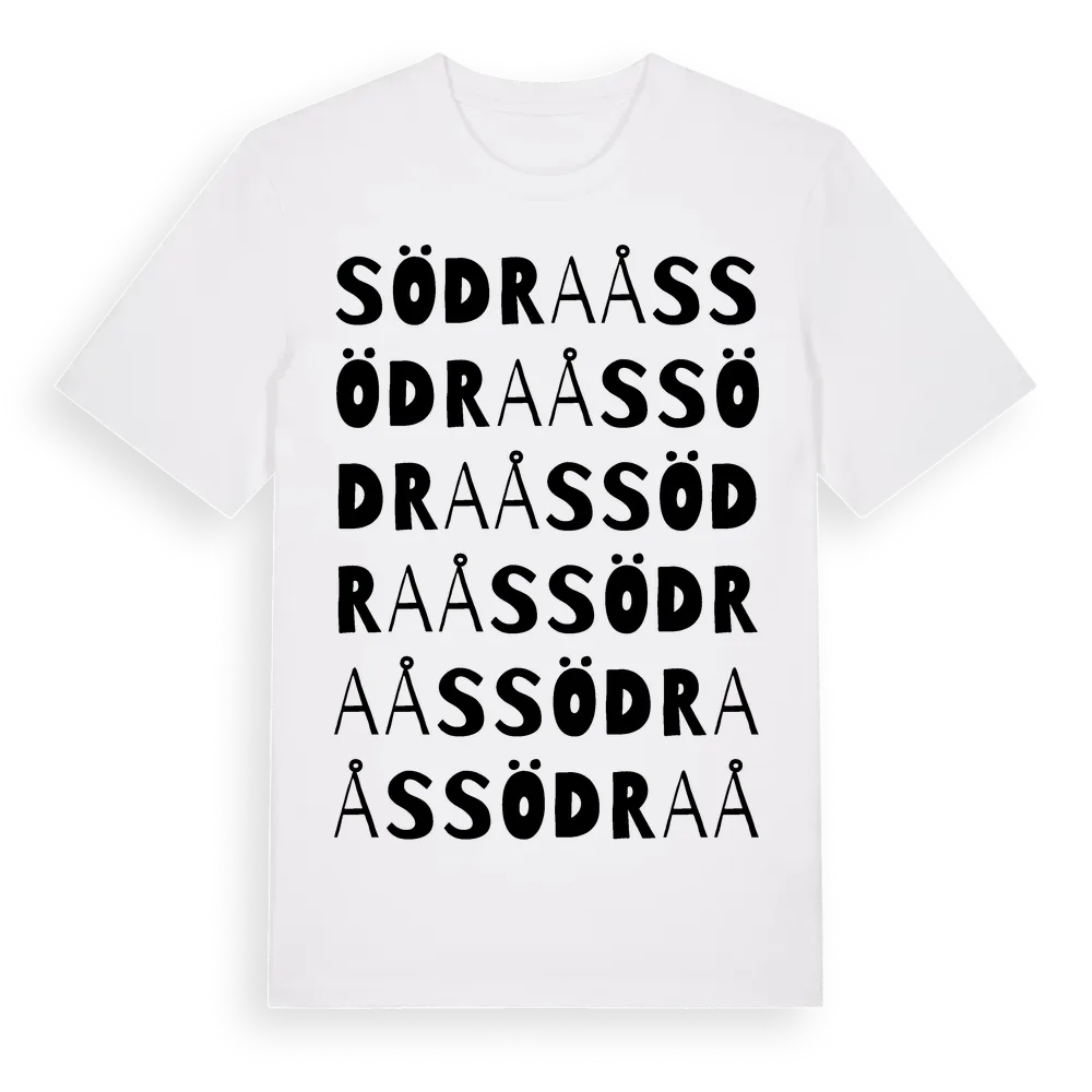 Södra Ås ordlek t-shirt är inspirerad av byn Södra Ås i Värmlands län, Sverige. Tröjan är designad för dig som har en speciell koppling till platsen – oavsett om du bor här, har rötterna här eller bara älskar Södra Ås.