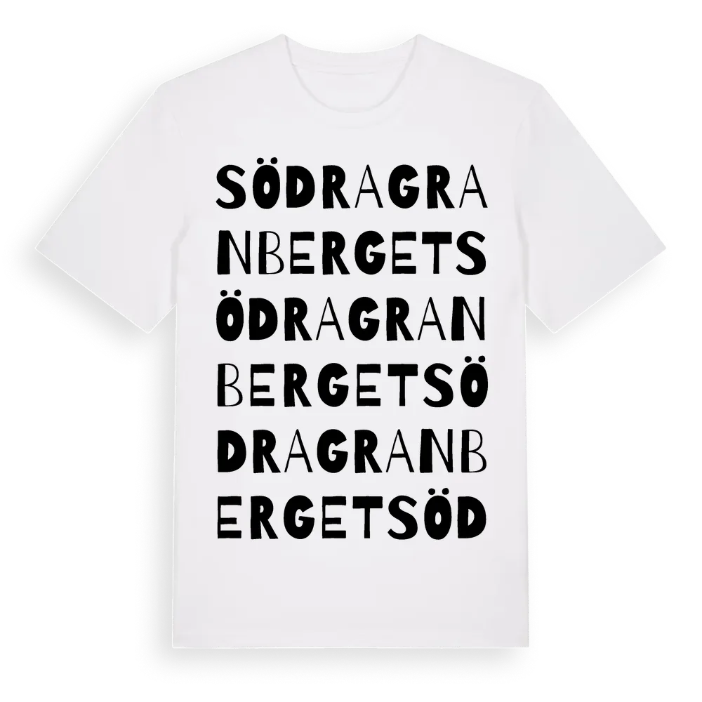 Södra Granberget ordlek t-shirt är inspirerad av Södra Granberget i Värmlands län, Sverige. Tröjan är designad för dig som har en speciell koppling till platsen – oavsett om du bor här, har rötterna här eller bara älskar Södra Granberget.