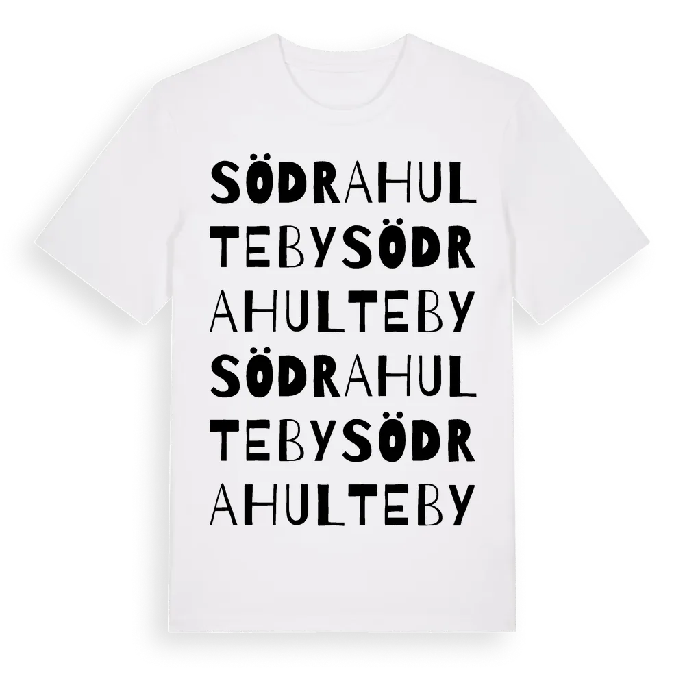 Södra Hulteby ordlek t-shirt är inspirerad av byn Södra Hulteby i Värmlands län, Sverige. Tröjan är designad för dig som har en speciell koppling till platsen – oavsett om du bor här, har rötterna här eller bara älskar Södra Hulteby.