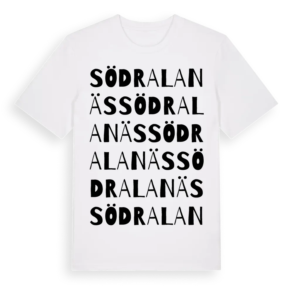 Södra Lanäs ordlek t-shirt är inspirerad av Södra Lanäs i Värmlands län, Sverige. Tröjan är designad för dig som har en speciell koppling till platsen – oavsett om du bor här, har rötterna här eller bara älskar Södra Lanäs.