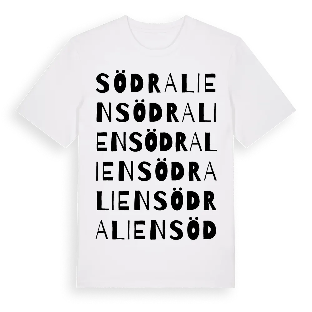 Södra Lien ordlek t-shirt är inspirerad av Södra Lien i Värmlands län, Sverige. Tröjan är designad för dig som har en speciell koppling till platsen – oavsett om du bor här, har rötterna här eller bara älskar Södra Lien.