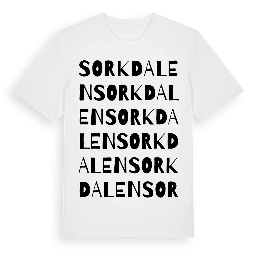 Sorkdalen ordlek t-shirt är inspirerad av Sorkdalen i Värmlands län, Sverige. Tröjan är designad för dig som har en speciell koppling till platsen – oavsett om du bor här, har rötterna här eller bara älskar Sorkdalen.