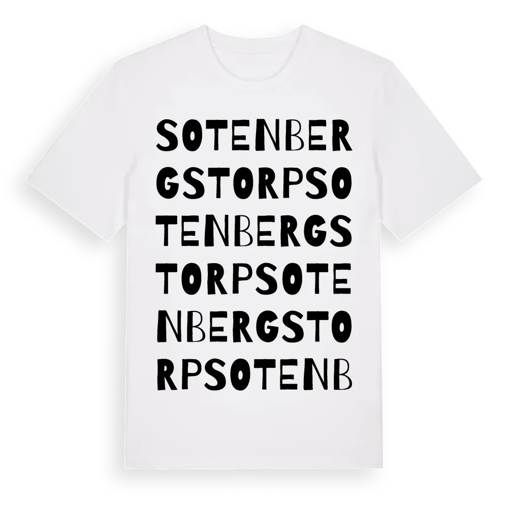 Sotenbergstorp ordlek t-shirt är inspirerad av Sotenbergstorp i Värmlands län, Sverige. Tröjan är designad för dig som har en speciell koppling till platsen – oavsett om du bor här, har rötterna här eller bara älskar Sotenbergstorp.
