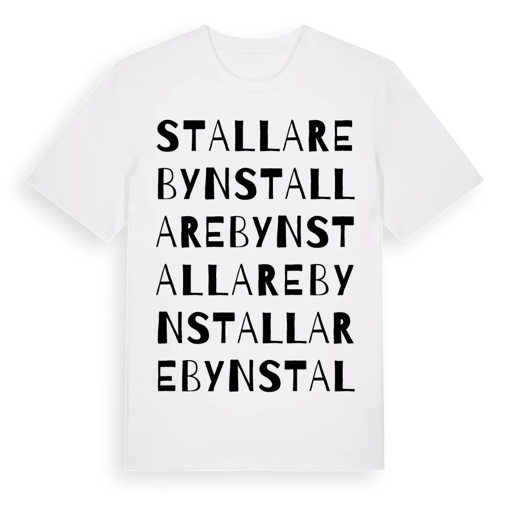 En ordlek byggd på Stallarebyns namn. Subtilt och klurig – ett motiv som bara de som verkligen känner platsen fullt ut förstår. Premium bomull, unisex – från Stallarebyn i Värmlands län.