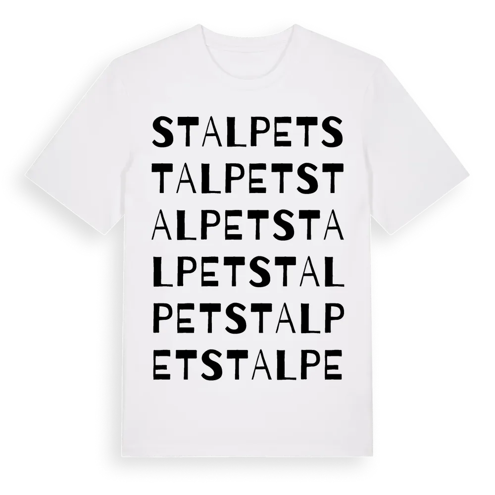 Stalpet ordlek t-shirt är inspirerad av Stalpet i Värmlands län, Sverige. Tröjan är designad för dig som har en speciell koppling till platsen – oavsett om du bor här, har rötterna här eller bara älskar Stalpet.