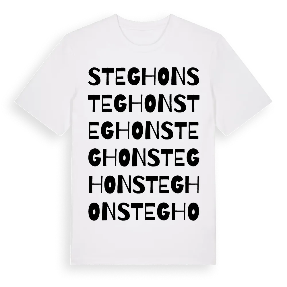 Steghon ordlek t-shirt är inspirerad av Steghon i Värmlands län, Sverige. Tröjan är designad för dig som har en speciell koppling till platsen – oavsett om du bor här, har rötterna här eller bara älskar Steghon.