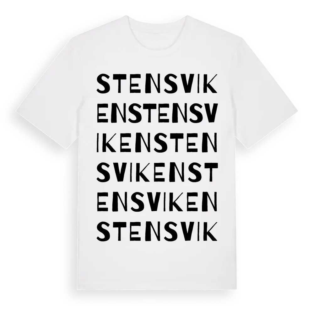 Stensviken ordlek t-shirt är inspirerad av byn Stensviken i Värmlands län, Sverige. Tröjan är designad för dig som har en speciell koppling till platsen – oavsett om du bor här, har rötterna här eller bara älskar Stensviken.