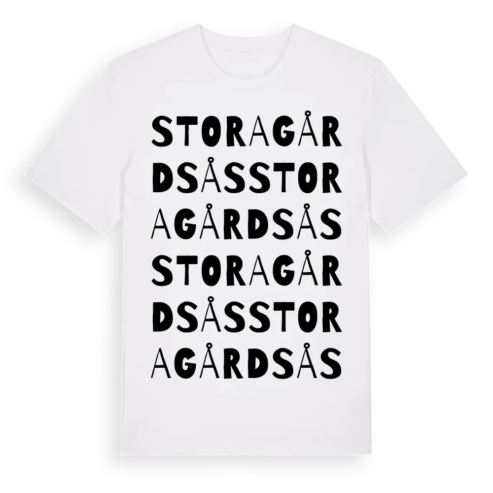 Stora Gårdsås ordlek t-shirt är inspirerad av Stora Gårdsås i Värmlands län, Sverige. Tröjan är designad för dig som har en speciell koppling till platsen – oavsett om du bor här, har rötterna här eller bara älskar Stora Gårdsås.