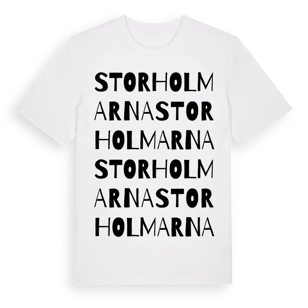 En ordlek byggd på Storholmarnas namn. Subtilt och klurig – ett motiv som bara de som verkligen känner platsen fullt ut förstår. Premium bomull, unisex – från Storholmarna i Värmlands län.