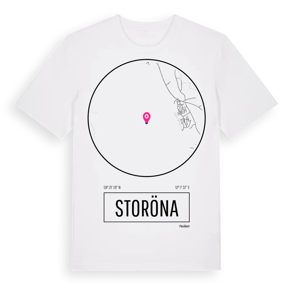 Storöna t-shirt är inspirerad av ön Storöna i Värmlands län, Sverige. Tröjan är designad för dig som har en speciell koppling till platsen – oavsett om du bor här, har rötterna här eller bara älskar Storöna.