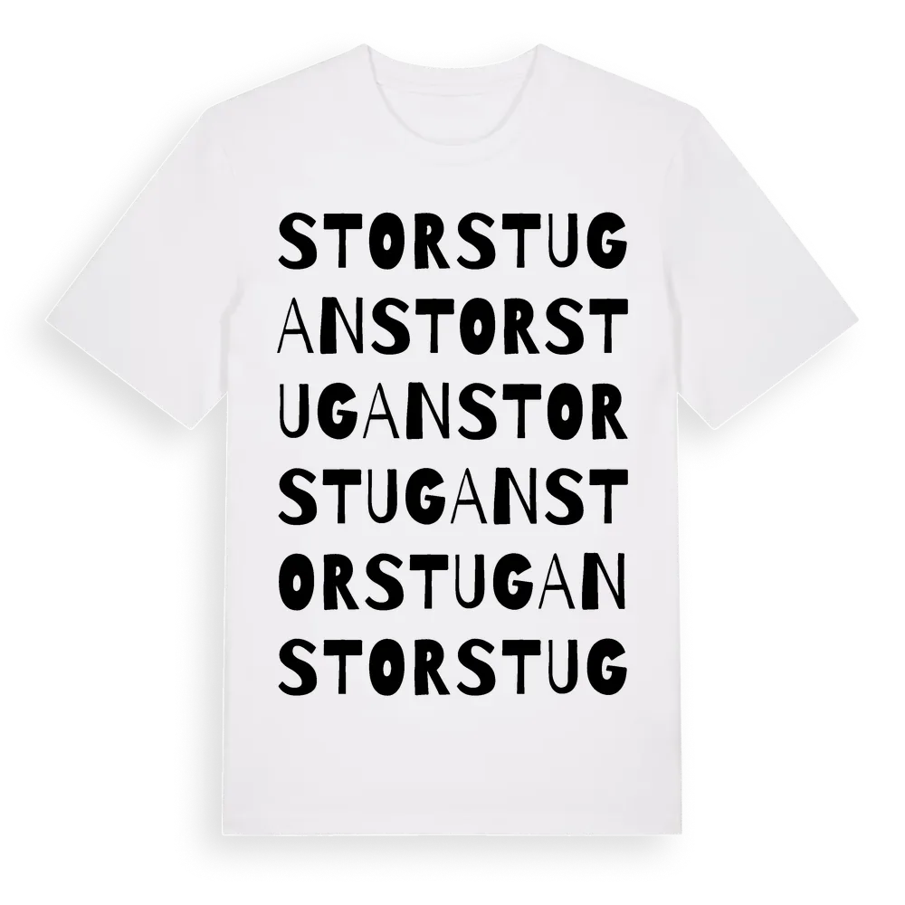 Storstugan ordlek t-shirt är inspirerad av Storstugan i Värmlands län, Sverige. Tröjan är designad för dig som har en speciell koppling till platsen – oavsett om du bor här, har rötterna här eller bara älskar Storstugan.