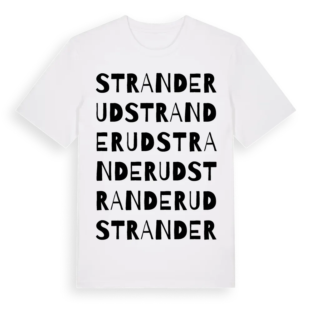 Stranderud ordlek t-shirt är inspirerad av Stranderud i Värmlands län, Sverige. Tröjan är designad för dig som har en speciell koppling till platsen – oavsett om du bor här, har rötterna här eller bara älskar Stranderud.