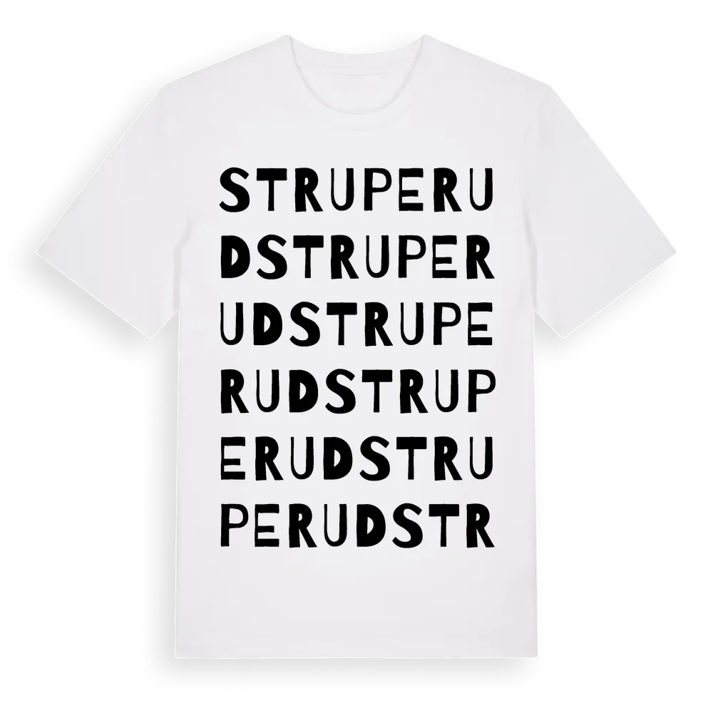 Struperud ordlek t-shirt är inspirerad av Struperud i Värmlands län, Sverige. Tröjan är designad för dig som har en speciell koppling till platsen – oavsett om du bor här, har rötterna här eller bara älskar Struperud.