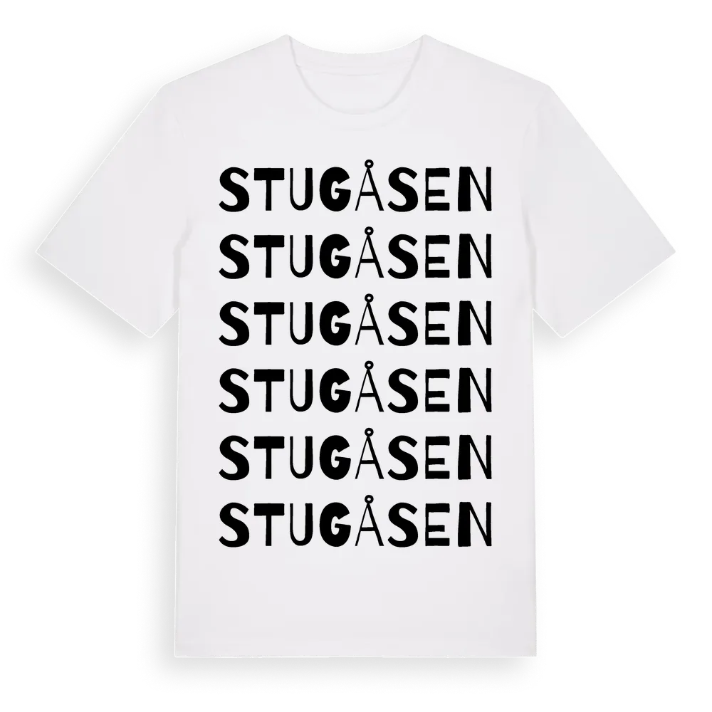Stugåsen ordlek t-shirt är inspirerad av Stugåsen i Värmlands län, Sverige. Tröjan är designad för dig som har en speciell koppling till platsen – oavsett om du bor här, har rötterna här eller bara älskar Stugåsen.