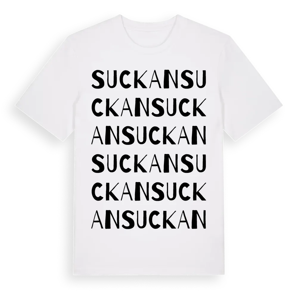 Suckan ordlek t-shirt är inspirerad av byn Suckan i Värmlands län, Sverige. Tröjan är designad för dig som har en speciell koppling till platsen – oavsett om du bor här, har rötterna här eller bara älskar Suckan.