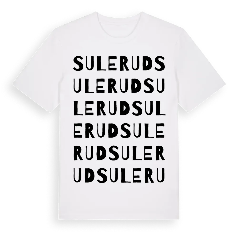 Sulerud ordlek t-shirt är inspirerad av Sulerud i Värmlands län, Sverige. Tröjan är designad för dig som har en speciell koppling till platsen – oavsett om du bor här, har rötterna här eller bara älskar Sulerud.