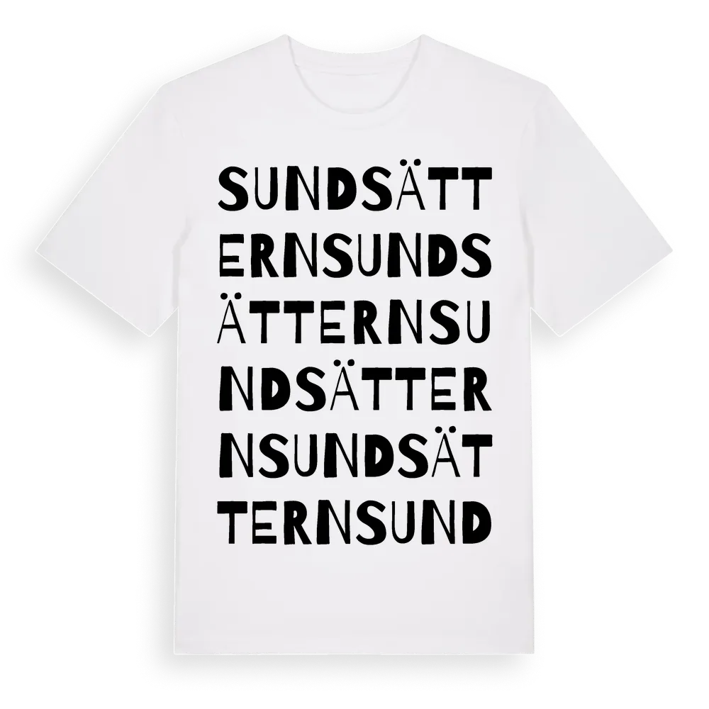 Sundsättern ordlek t-shirt är inspirerad av Sundsättern i Värmlands län, Sverige. Tröjan är designad för dig som har en speciell koppling till platsen – oavsett om du bor här, har rötterna här eller bara älskar Sundsättern.