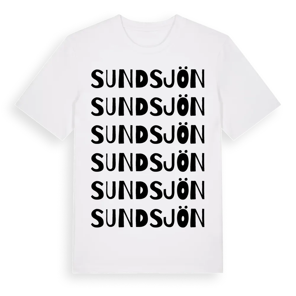 Sundsjön ordlek t-shirt är inspirerad av byn Sundsjön i Värmlands län, Sverige. Tröjan är designad för dig som har en speciell koppling till platsen – oavsett om du bor här, har rötterna här eller bara älskar Sundsjön.