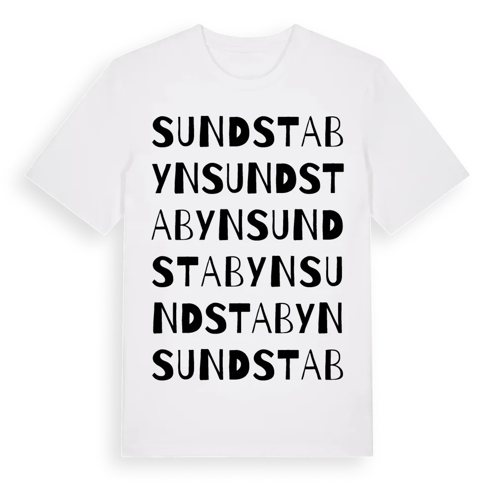 Sundstabyn ordlek t-shirt är inspirerad av Sundstabyn i Värmlands län, Sverige. Tröjan är designad för dig som har en speciell koppling till platsen – oavsett om du bor här, har rötterna här eller bara älskar Sundstabyn.