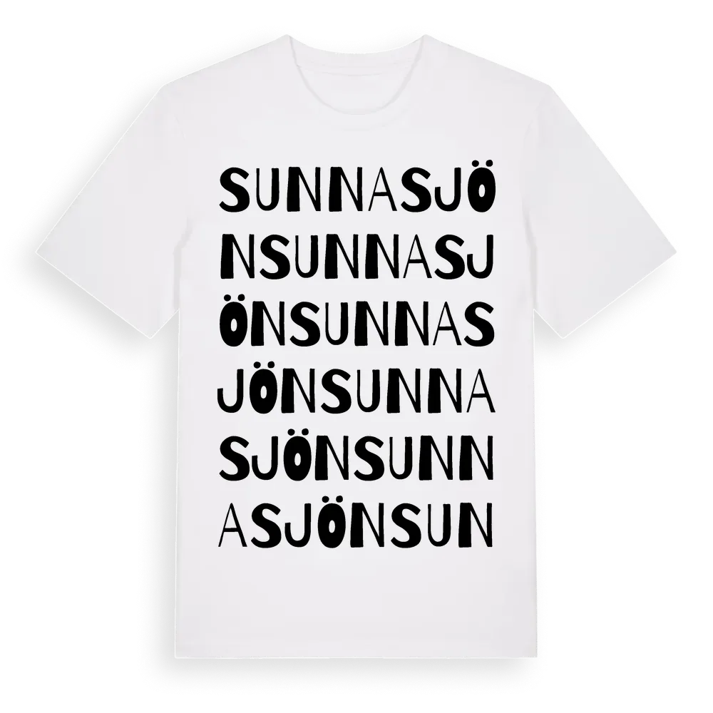 Sunnasjön ordlek t-shirt är inspirerad av Sunnasjön i Värmlands län, Sverige. Tröjan är designad för dig som har en speciell koppling till platsen – oavsett om du bor här, har rötterna här eller bara älskar Sunnasjön.