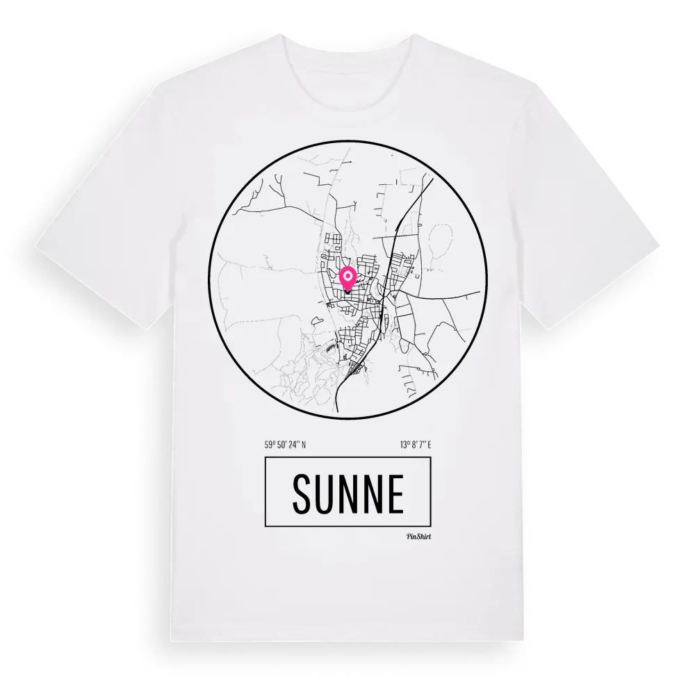 Sunne t-shirt är inspirerad av staden Sunne i Värmlands län, Sverige. Tröjan är designad för dig som har en speciell koppling till platsen – oavsett om du bor här, har rötterna här eller bara älskar Sunne.