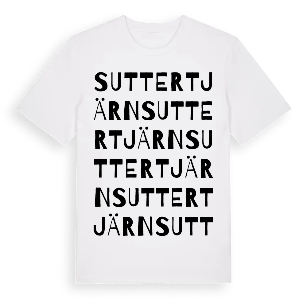 En ordlek byggd på Suttertjärns namn. Subtilt och klurig – ett motiv som bara de som verkligen känner platsen fullt ut förstår. Premium bomull, unisex – från Suttertjärn i Värmlands län.