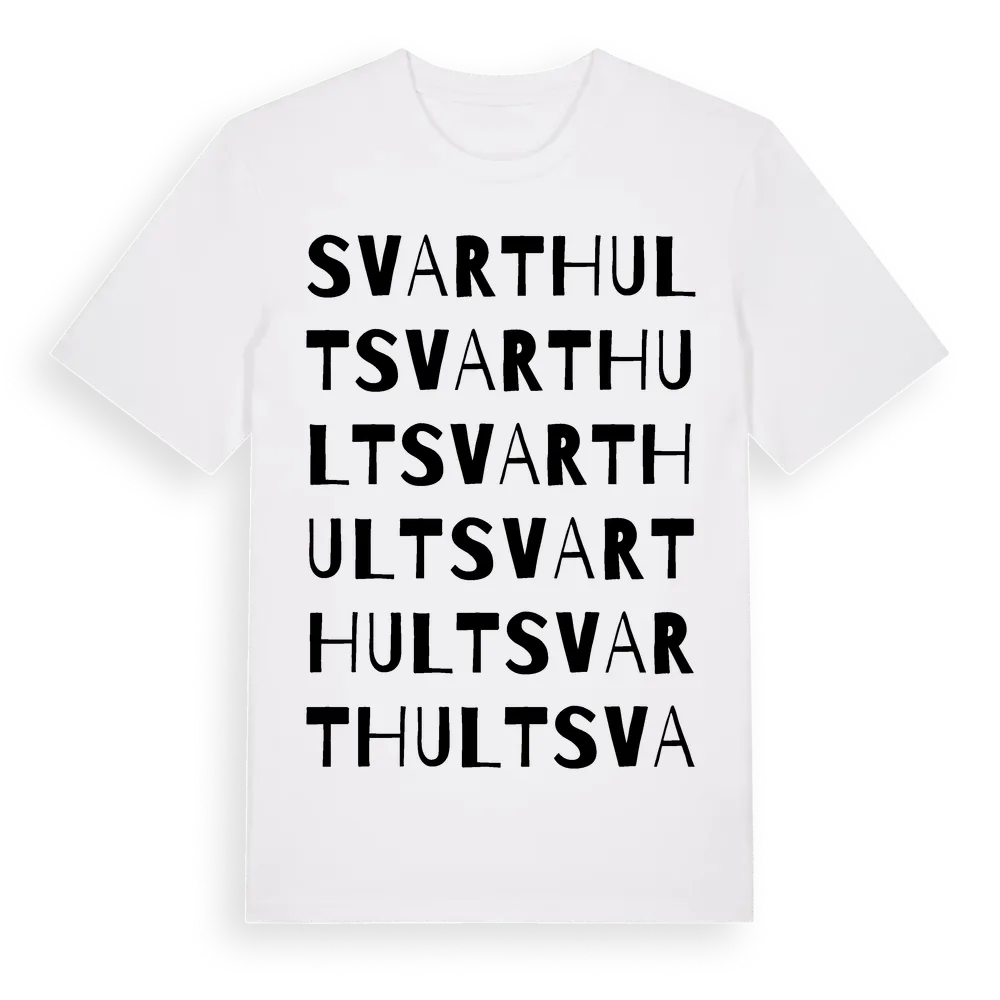 Svarthult ordlek t-shirt är inspirerad av Svarthult i Värmlands län, Sverige. Tröjan är designad för dig som har en speciell koppling till platsen – oavsett om du bor här, har rötterna här eller bara älskar Svarthult.