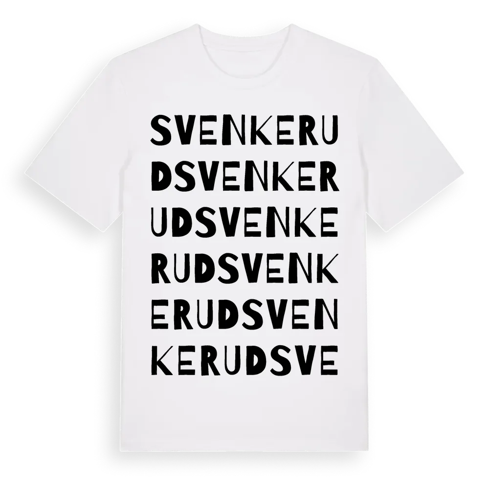 Svenkerud ordlek t-shirt är inspirerad av Svenkerud i Värmlands län, Sverige. Tröjan är designad för dig som har en speciell koppling till platsen – oavsett om du bor här, har rötterna här eller bara älskar Svenkerud.