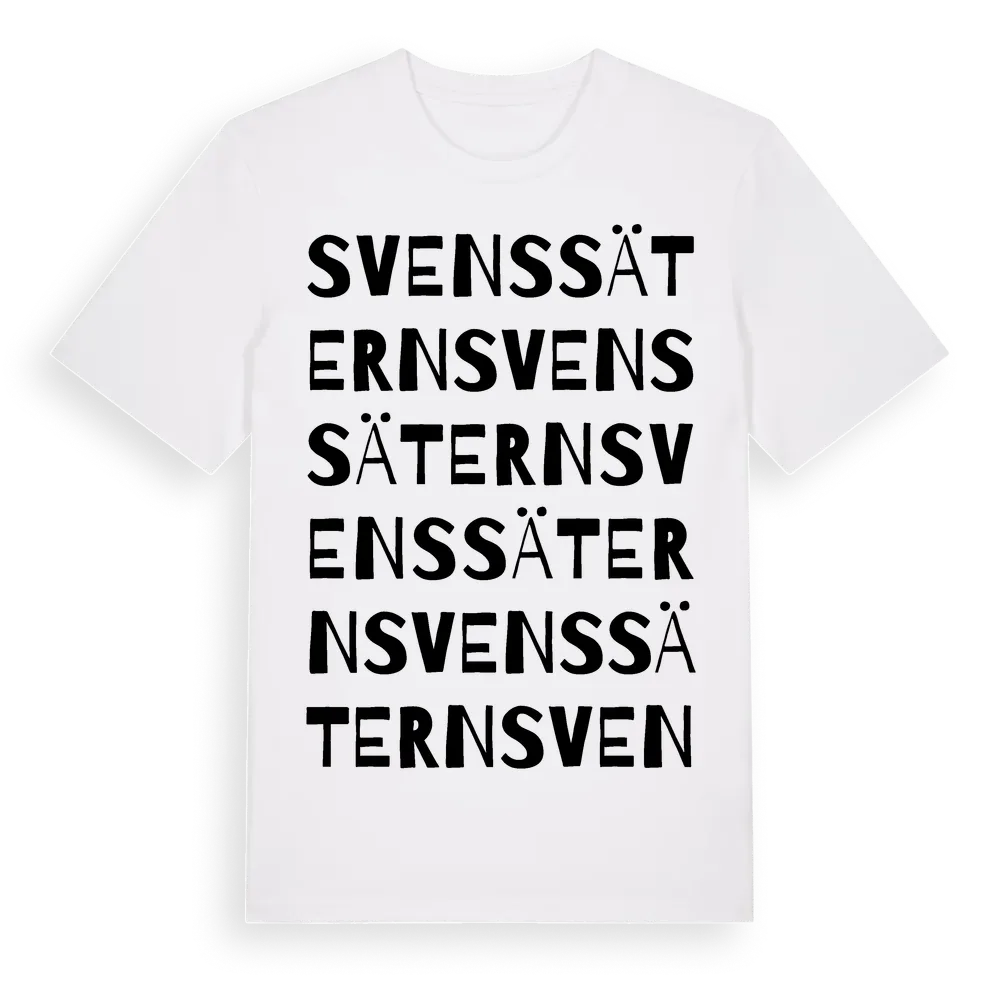 Svenssätern ordlek t-shirt är inspirerad av Svenssätern i Värmlands län, Sverige. Tröjan är designad för dig som har en speciell koppling till platsen – oavsett om du bor här, har rötterna här eller bara älskar Svenssätern.