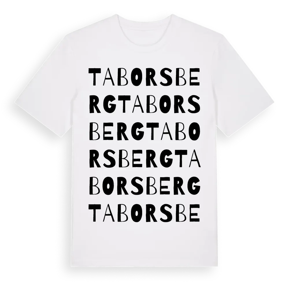 Taborsberg ordlek t-shirt är inspirerad av Taborsberg i Värmlands län, Sverige. Tröjan är designad för dig som har en speciell koppling till platsen – oavsett om du bor här, har rötterna här eller bara älskar Taborsberg.