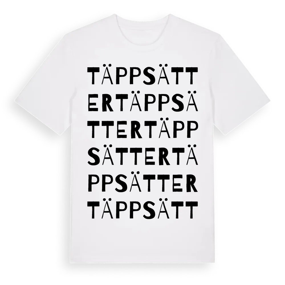 Täppsätter ordlek t-shirt är inspirerad av Täppsätter i Värmlands län, Sverige. Tröjan är designad för dig som har en speciell koppling till platsen – oavsett om du bor här, har rötterna här eller bara älskar Täppsätter.