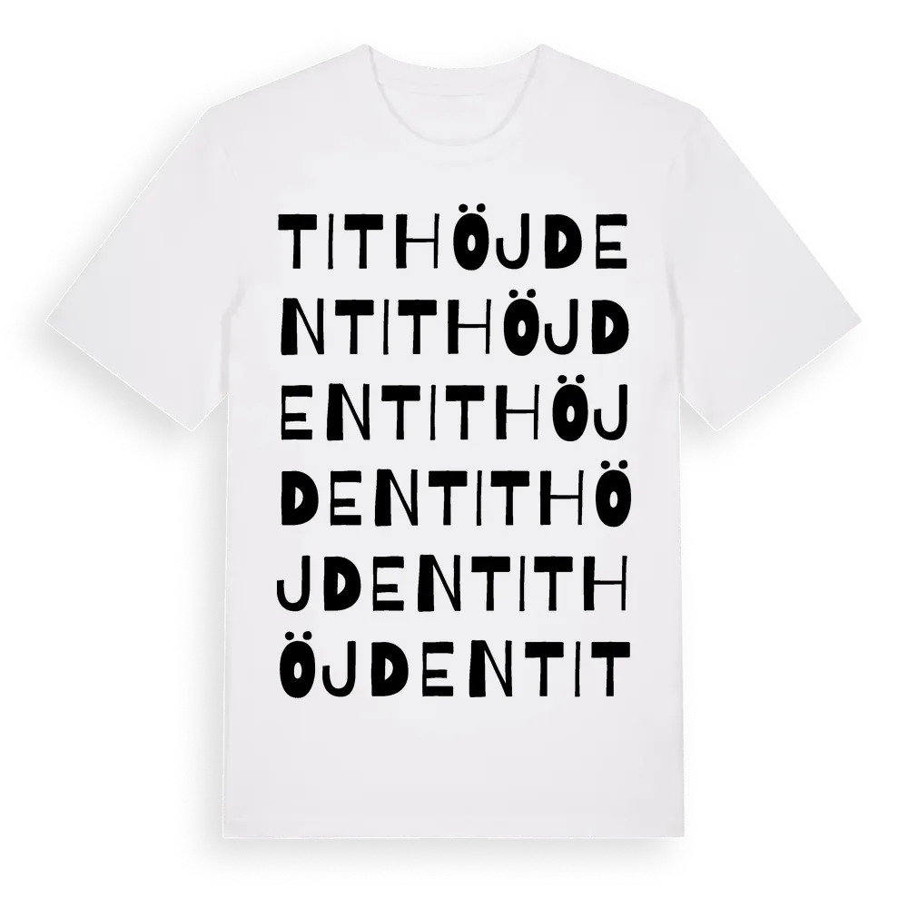 Tithöjden ordlek t-shirt är inspirerad av Tithöjden i Värmlands län, Sverige. Tröjan är designad för dig som har en speciell koppling till platsen – oavsett om du bor här, har rötterna här eller bara älskar Tithöjden.