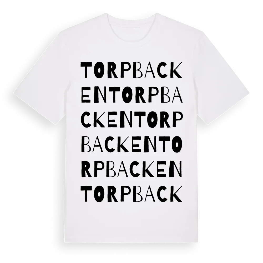 Torpbacken ordlek t-shirt är inspirerad av Torpbacken i Värmlands län, Sverige. Tröjan är designad för dig som har en speciell koppling till platsen – oavsett om du bor här, har rötterna här eller bara älskar Torpbacken.