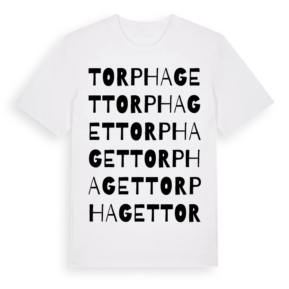 Torphaget ordlek t-shirt är inspirerad av Torphaget i Värmlands län, Sverige. Tröjan är designad för dig som har en speciell koppling till platsen – oavsett om du bor här, har rötterna här eller bara älskar Torphaget.