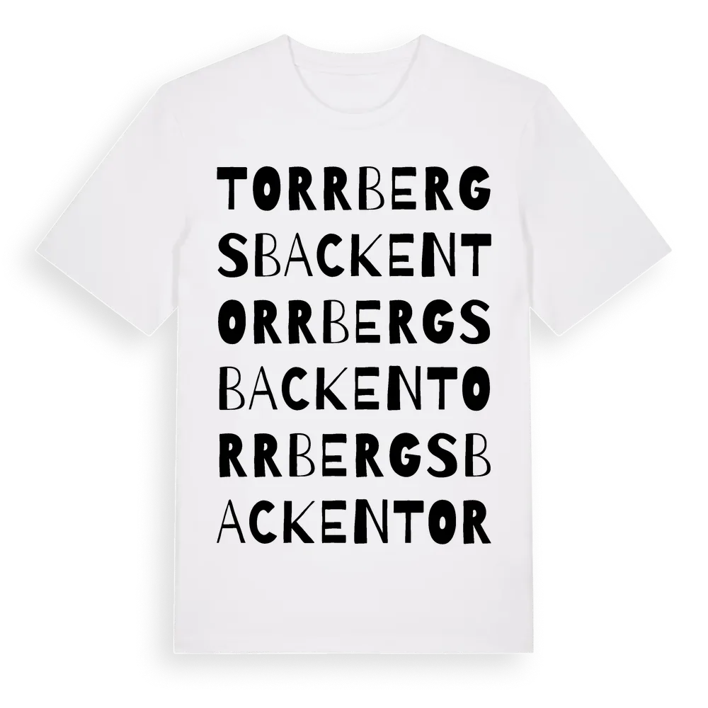 Torrbergsbacken ordlek t-shirt är inspirerad av Torrbergsbacken i Värmlands län, Sverige. Tröjan är designad för dig som har en speciell koppling till platsen – oavsett om du bor här, har rötterna här eller bara älskar Torrbergsbacken.
