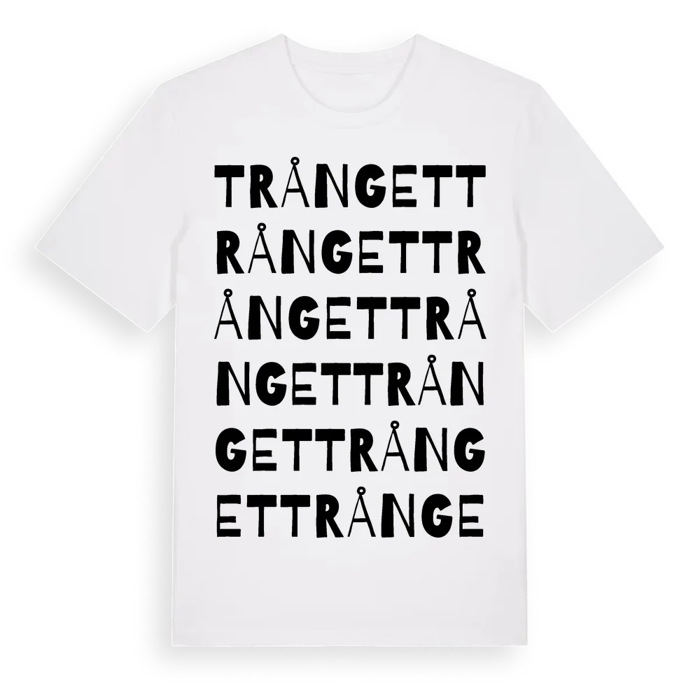 Trånget ordlek t-shirt är inspirerad av Trånget i Värmlands län, Sverige. Tröjan är designad för dig som har en speciell koppling till platsen – oavsett om du bor här, har rötterna här eller bara älskar Trånget.