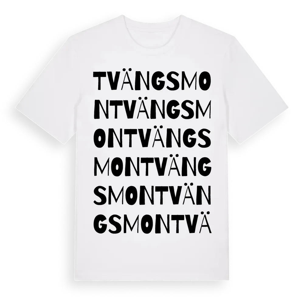 Tvängsmon ordlek t-shirt är inspirerad av Tvängsmon i Värmlands län, Sverige. Tröjan är designad för dig som har en speciell koppling till platsen – oavsett om du bor här, har rötterna här eller bara älskar Tvängsmon.