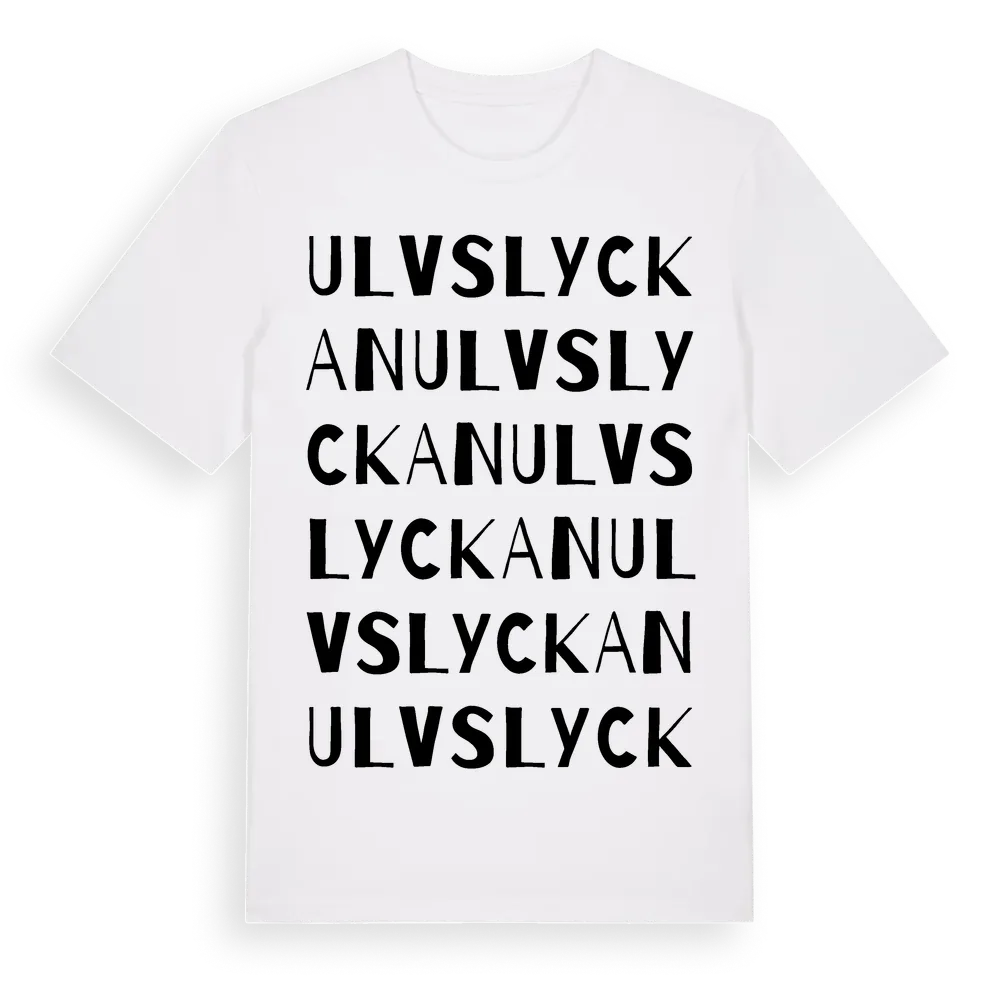Ulvslyckan ordlek t-shirt är inspirerad av Ulvslyckan i Värmlands län, Sverige. Tröjan är designad för dig som har en speciell koppling till platsen – oavsett om du bor här, har rötterna här eller bara älskar Ulvslyckan.