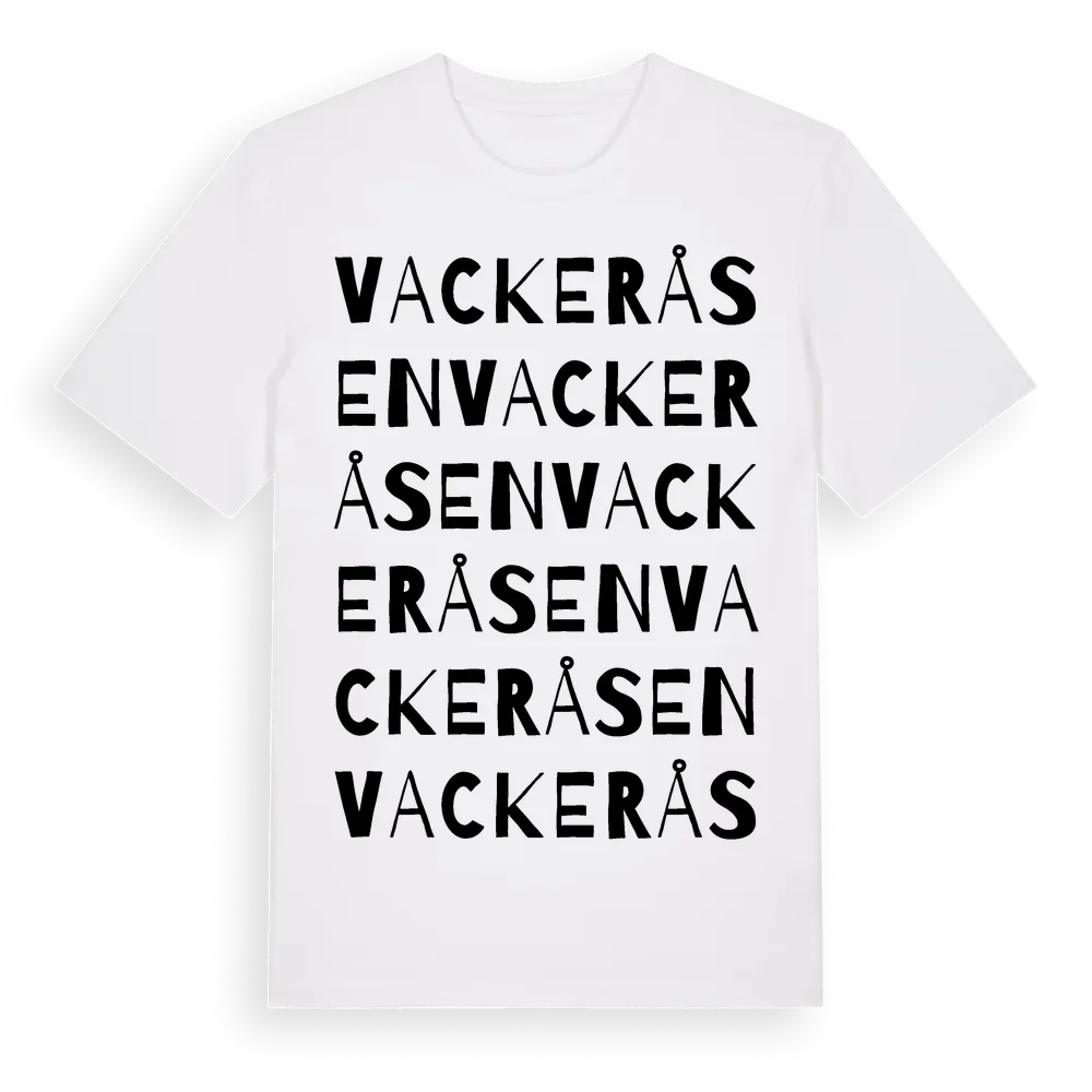 Vackeråsen ordlek t-shirt är inspirerad av Vackeråsen i Värmlands län, Sverige. Tröjan är designad för dig som har en speciell koppling till platsen – oavsett om du bor här, har rötterna här eller bara älskar Vackeråsen.