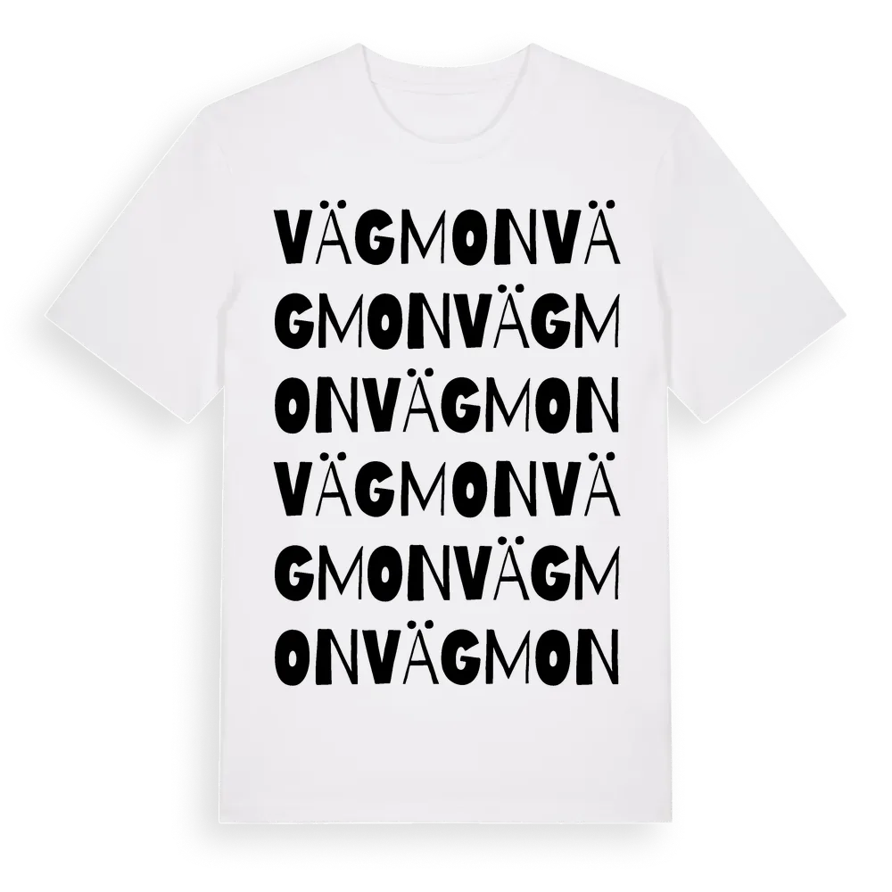 Vägmon ordlek t-shirt är inspirerad av Vägmon i Värmlands län, Sverige. Tröjan är designad för dig som har en speciell koppling till platsen – oavsett om du bor här, har rötterna här eller bara älskar Vägmon.