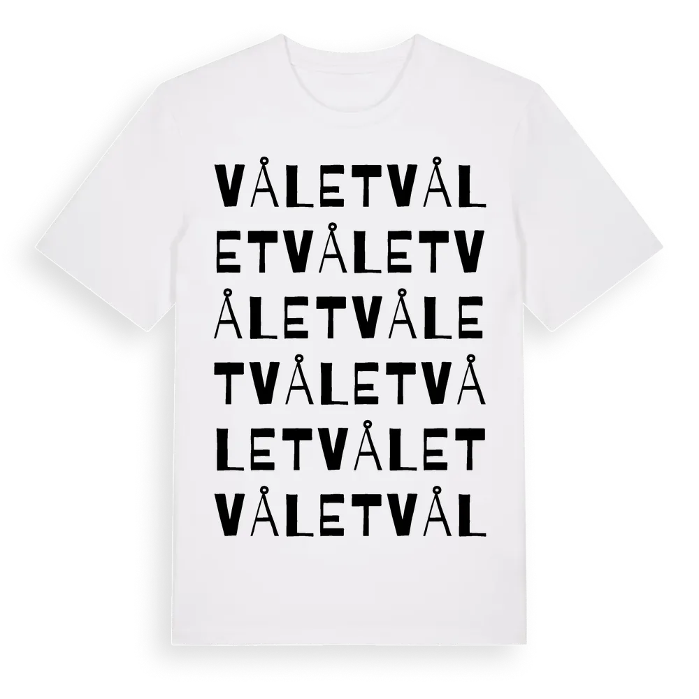 Vålet ordlek t-shirt är inspirerad av Vålet i Värmlands län, Sverige. Tröjan är designad för dig som har en speciell koppling till platsen – oavsett om du bor här, har rötterna här eller bara älskar Vålet.