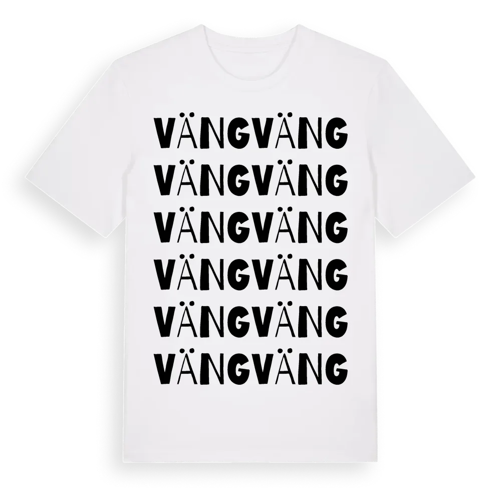 En ordlek byggd på Vängs namn. Subtilt och klurig – ett motiv som bara de som verkligen känner platsen fullt ut förstår. Premium bomull, unisex – från byn Väng i Värmlands län.