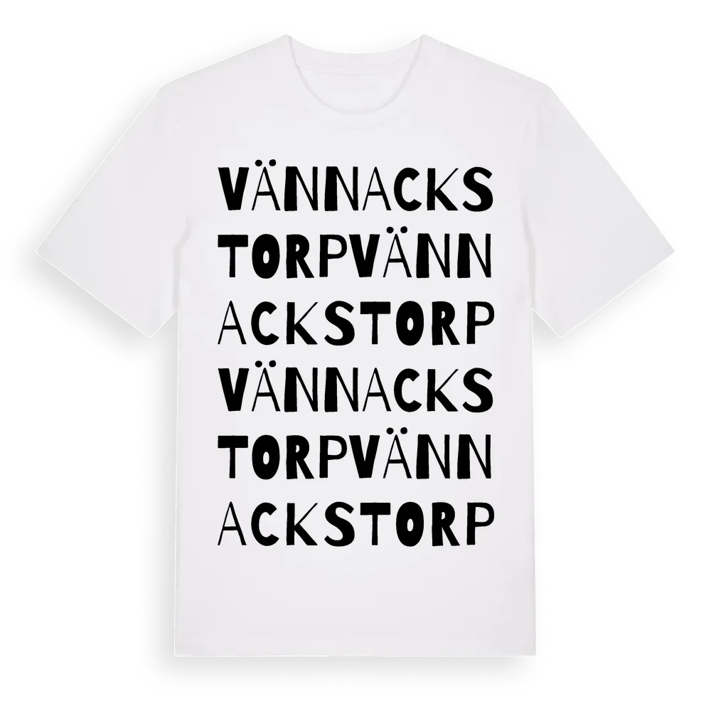 Vännackstorp ordlek t-shirt är inspirerad av Vännackstorp i Värmlands län, Sverige. Tröjan är designad för dig som har en speciell koppling till platsen – oavsett om du bor här, har rötterna här eller bara älskar Vännackstorp.
