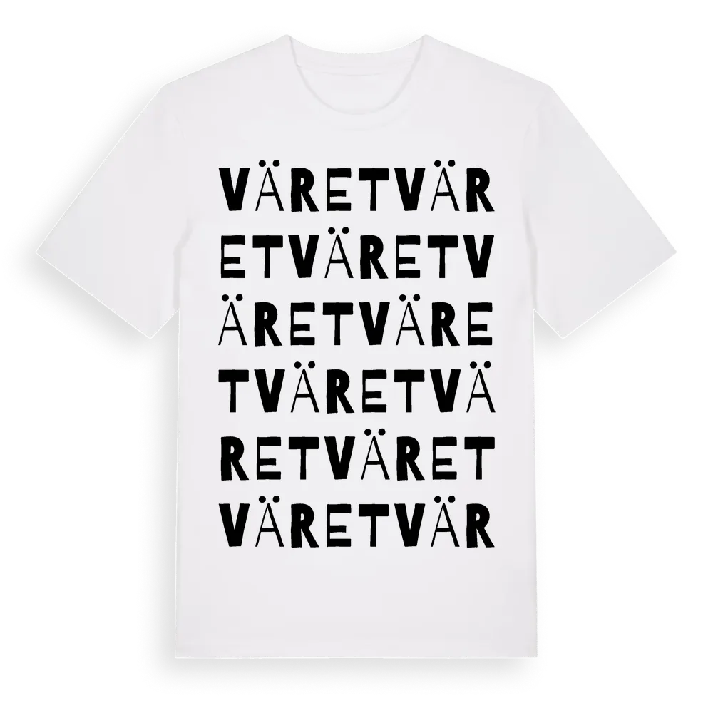 Väret ordlek t-shirt är inspirerad av Väret i Värmlands län, Sverige. Tröjan är designad för dig som har en speciell koppling till platsen – oavsett om du bor här, har rötterna här eller bara älskar Väret.
