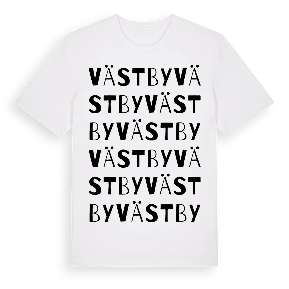 Västby ordlek t-shirt är inspirerad av Västby i Värmlands län, Sverige. Tröjan är designad för dig som har en speciell koppling till platsen – oavsett om du bor här, har rötterna här eller bara älskar Västby.